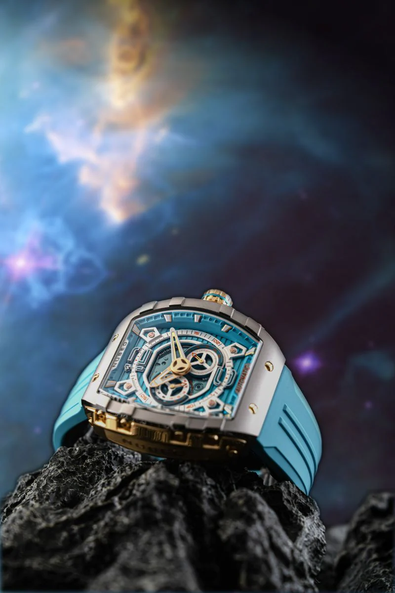 A new addition to Nubeo's beloved collection, Magellan 24 Hour Automatic features a signature tonneau-shaped case with interconnected parts, and a Japanese automatic movement with a 24-hour feature. This timepiece boasts both style and functionality. Available in bold and vibrant colors, it's a stunning and captivating addition to your watch collection.