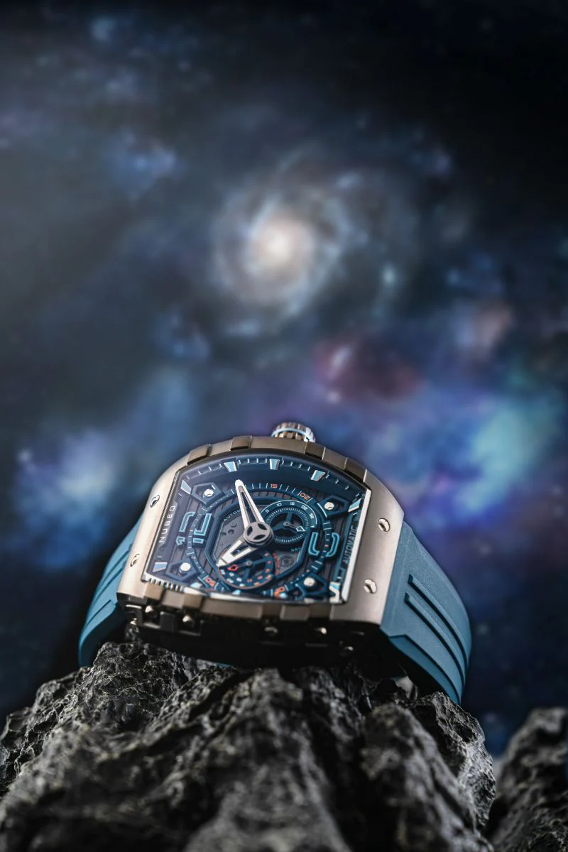 A new addition to Nubeo's beloved collection, Magellan 24 Hour Automatic features a signature tonneau-shaped case with interconnected parts, and a Japanese automatic movement with a 24-hour feature. This timepiece boasts both style and functionality. Available in bold and vibrant colors, it's a stunning and captivating addition to your watch collection.
